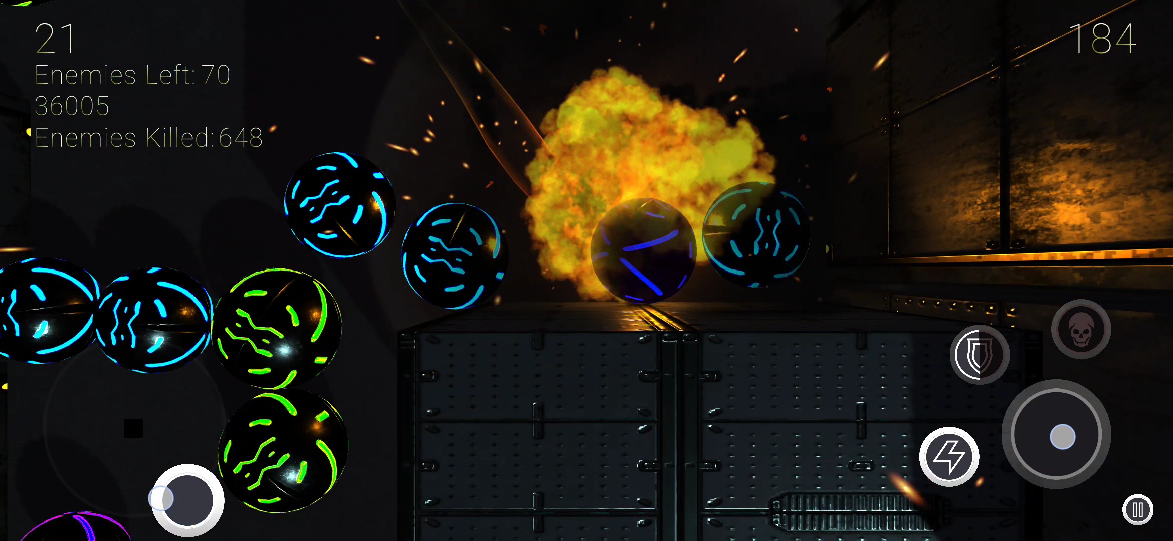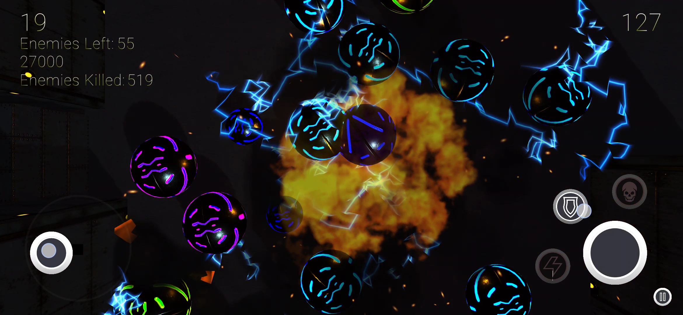 Fight through escalating waves of enemies, collect power-ups, unlock new skins, and push your limits as the difficulty climbs each round.